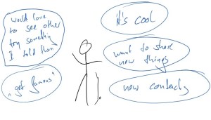 First up, grab a pen and paper and set a timer for sixty  seconds. Draw a stick figure in the center. That’s you. Now  prepare to start the countdown and scribble down  anything (really, anything) that comes to mind when you  think of reasons why you’d like to have a blog. Ready? Go!