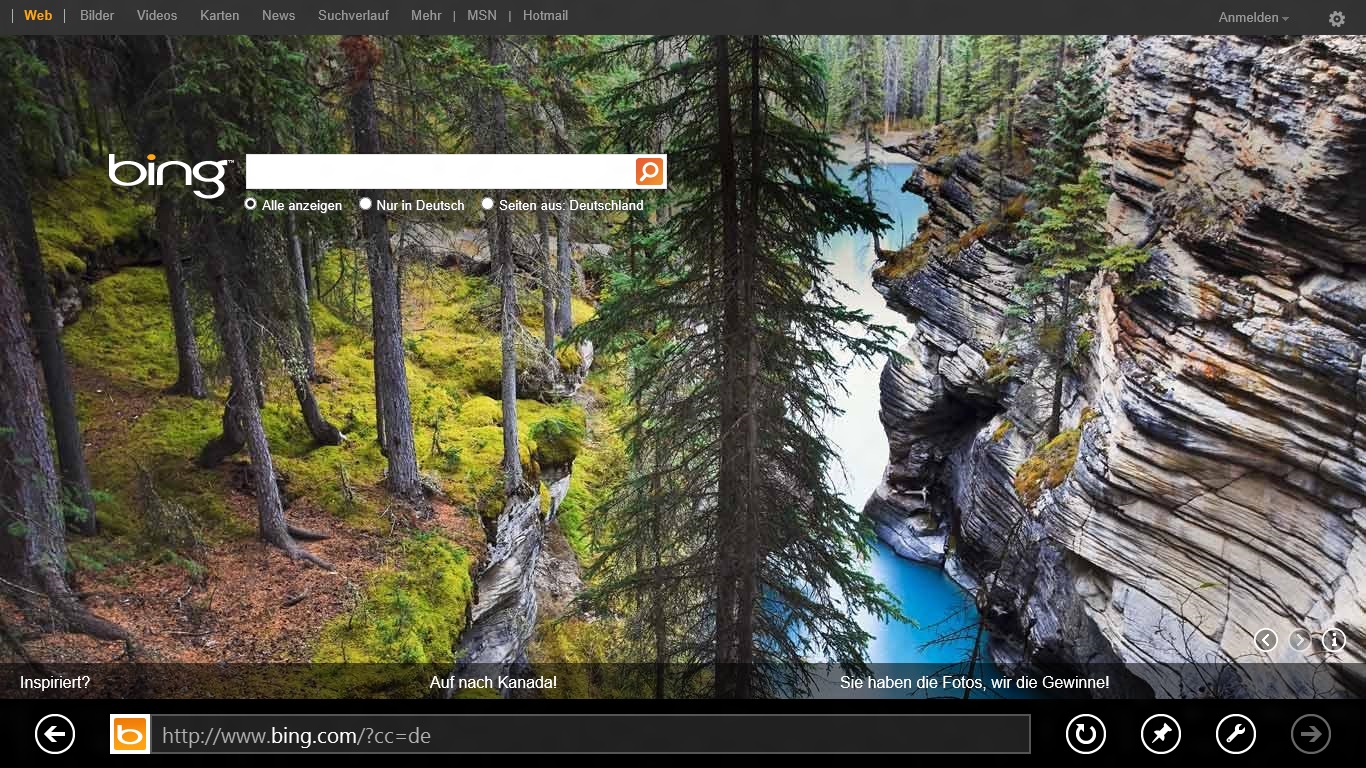 Falls ihr euch fragt wie ich von dem Wallpaper-Format von Bing auf Windows8 komme, das ist ganz einfach: Öffnet Bing in der Windows8 Internet Explorer Metro App , dann seht ihr was ich meine:
