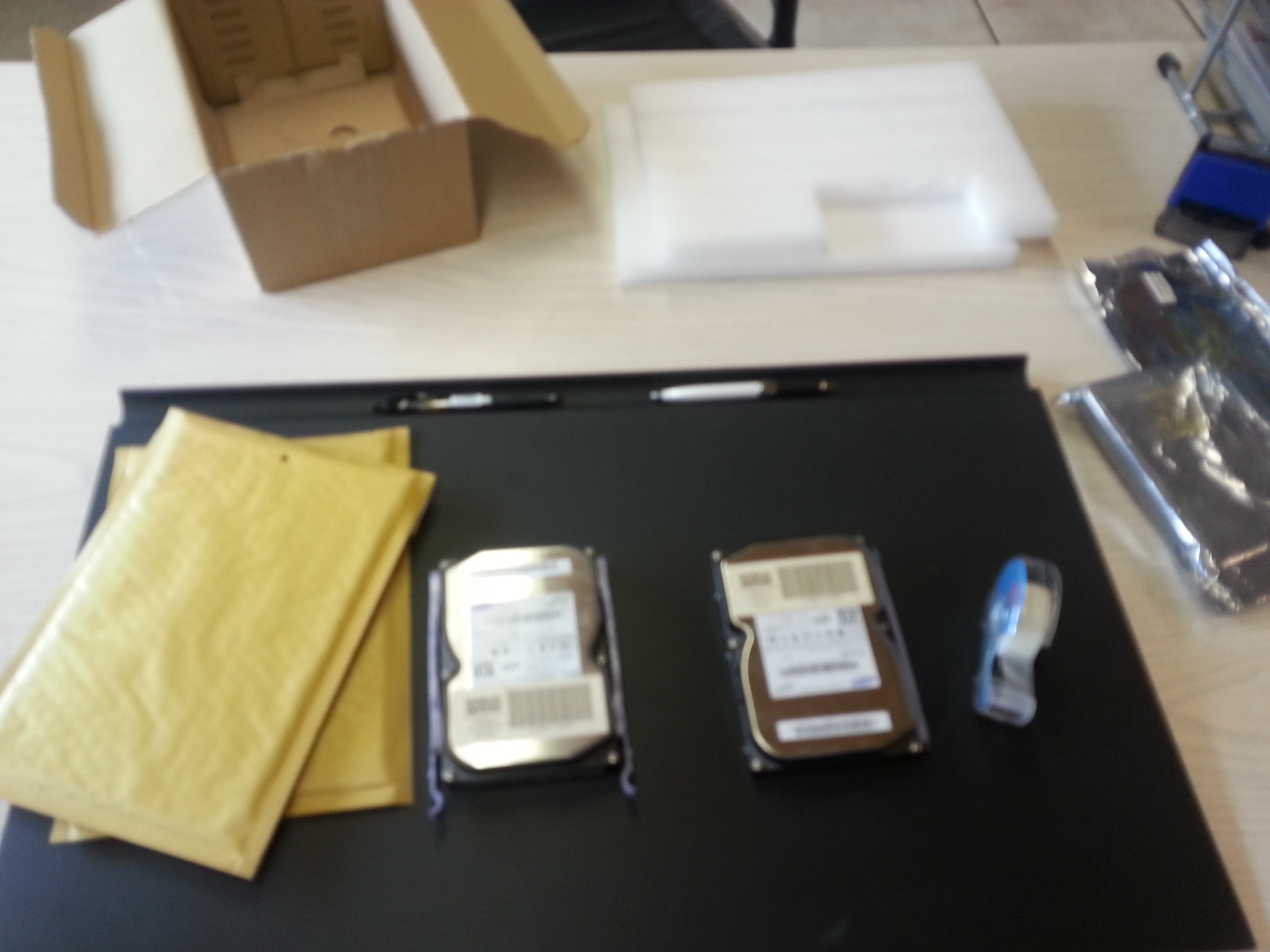 Was wir hier auf dem Bild sehen sind zwei 160GB Festplatten die mal im Raid1 verbunden waren. Sie wurden dann für über ein Jahr nicht mehr gebraucht und haben im ausgebauten Zustand ihre Zeit in einem Regal verbracht. Von einer der beiden Festplatten wusste ich schon damals das Sie seit längerem defekt und ausgefallen war. Heute ist es dann so das wir in der Firma an ein paar der alten Dateien dran mussten und wie der Zufall so will, ist leider die andere Festplatte auch defekt.