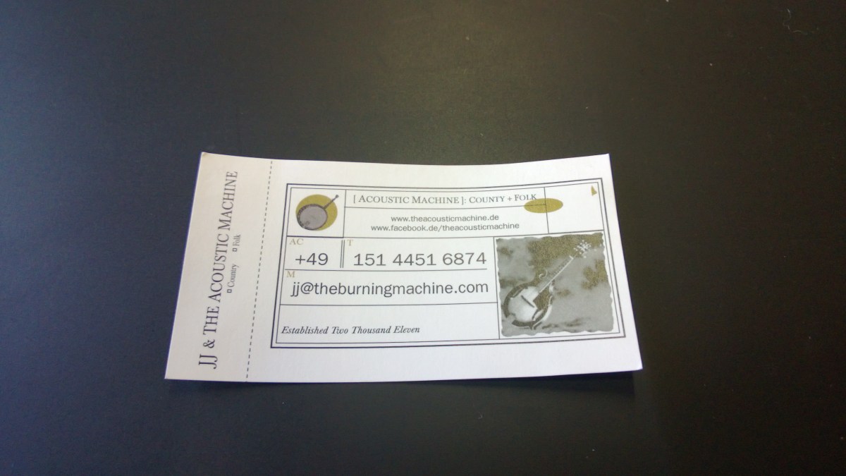 JJ & The Acoustic Machine (2) Veröffentlicht Januar 11, 2013 in 3552 × 2000 in Für eine Musikband machen Visitenkarten Sinn ← Zurück Weiter →