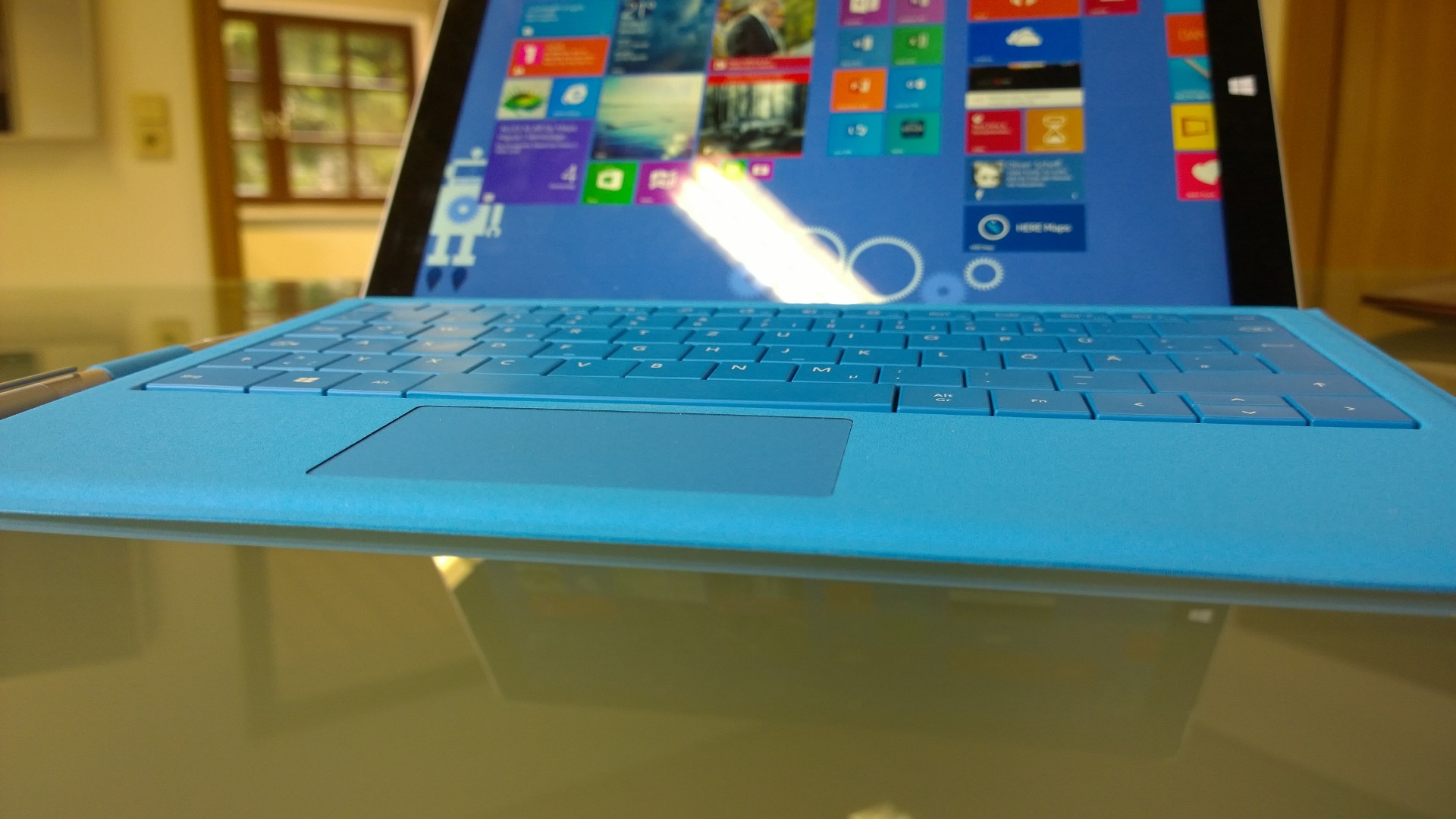 Die Tastatur. Den ein nicht unerheblicher Teil der Arbeit bezieht sich darauf die eigentlich Arbeit auch zu tippen. Nachdem ich die Tastatur jetzt selber schon einige Zeit in Gebrauch habe, kann ich sagen, dass ich persönlich sie sehr gut finde. Wobei ehrlichweise will ich nicht verschweigen, dass ich besonders am Anfang Zeit zum eingewöhnen brauchte. Das Type Cover des Surface Pro 3 ist nur 5mm dick, dadurch ist der Tastenhub natürlich auch sehr gering im Vergleich zu anderen Laptops. Mittlerweile benutze ich die Tastatur aber genau wie jeder andere und kann nicht feststellen, dass ich schneller oder langsamer mit dem Surface Pro 3 Type Cover bin.