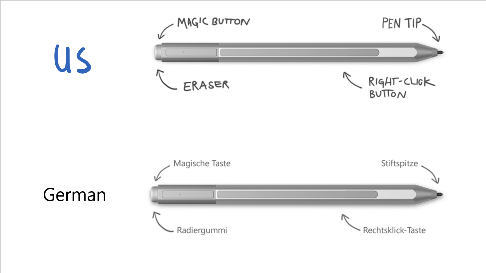Und damit meine ich nicht die Unterschiede die man auf der Deutschen und auf der US Seite vom Surface Pen sehen kann. Sondern das Layout des Stiftes hat sich im Vergleich zu seinen Vorgängern verändert. Anders als beim Stift vom Surface Pro 3 der sinnvollerweise auch einfach nur Surface Pen genannt wurde ist der neue Stift an einer Seite abgeflacht und hat an dieser nur noch einen Button anstelle der Zwei. Das heißt der Knopf für das Radiergummi ist jetzt an die Stelle des alten OneNote Button gewandert und erfüllt, hat aber trotzdem seine alten Funktionen beibehalten. Deswegen heißt er ja auch ab jetzt „Magic Button“