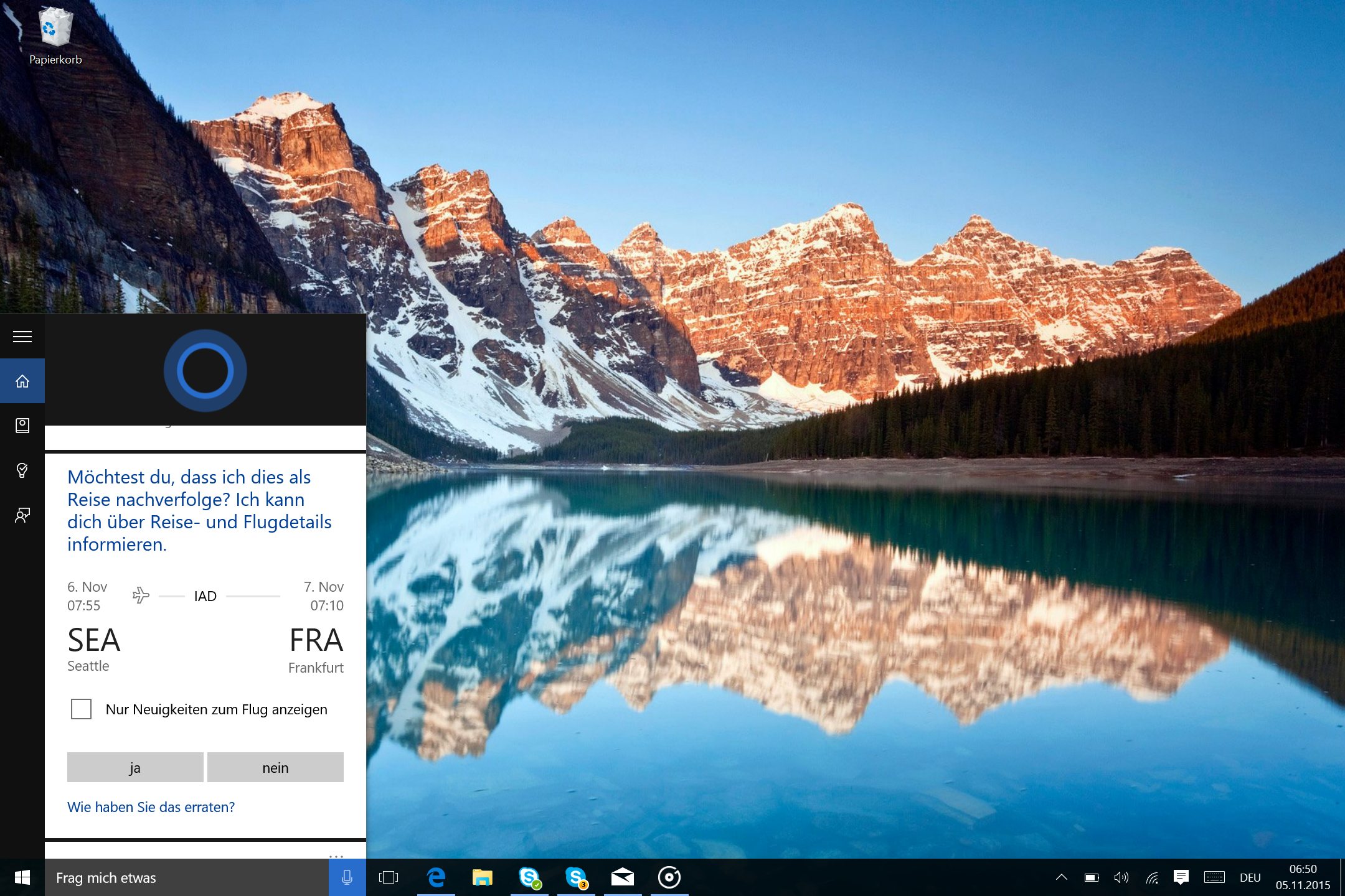 Cortana – Flight Tracking (1) Veröffentlicht November 22, 2015 in 2160 × 1440 in Sollte ich auf Windows 10 updaten? ← Zurück Weiter →
