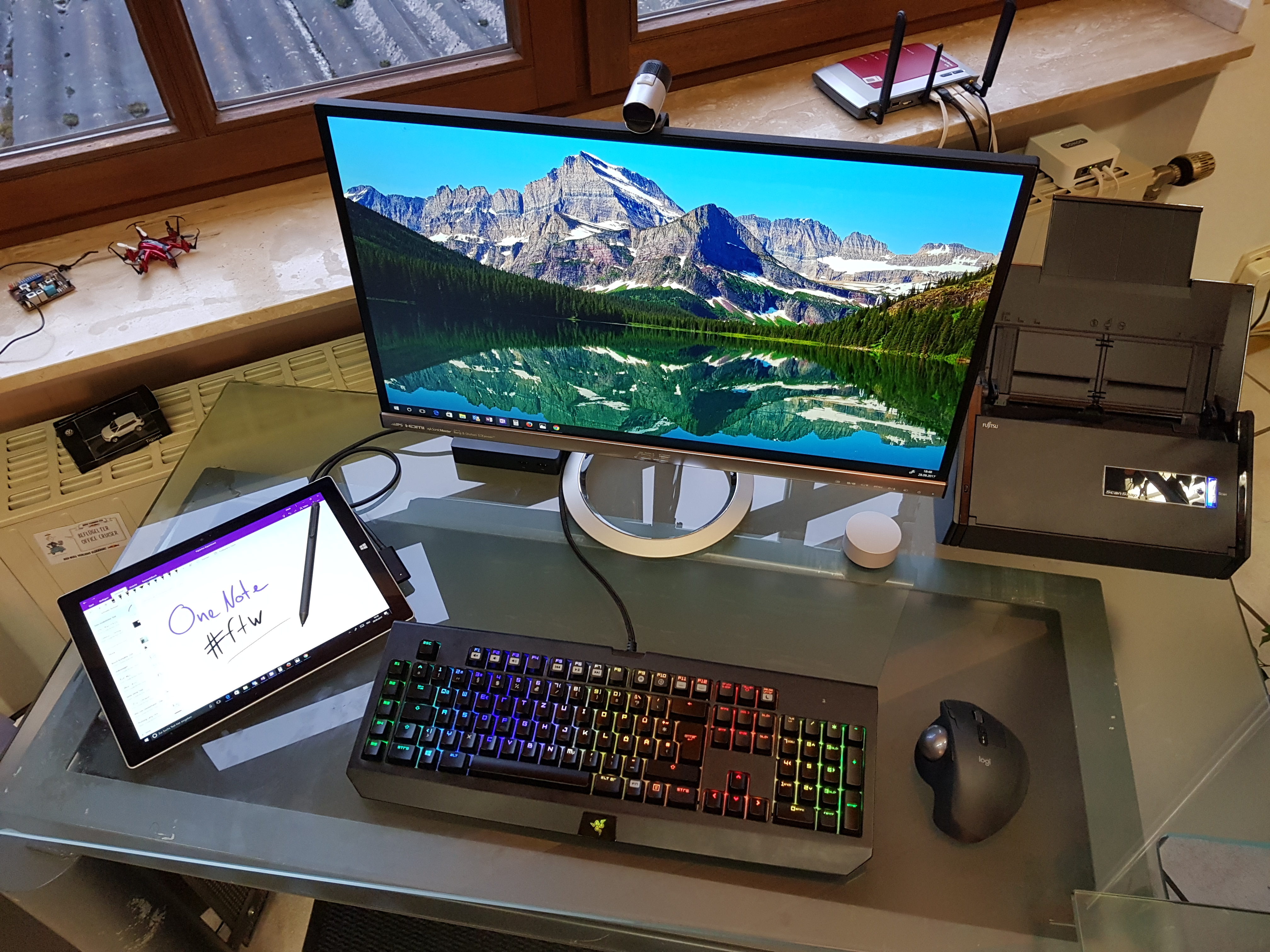 Was mich an dem Setup am meisten beeindruckt ist, dass ich es in ähnlicher Form seit über drei Jahren benutze. Das Surface Pro 3 ist in all dieser Zeit das selbe geblieben. Lediglich die Peripherie hat sich leicht geändert.
